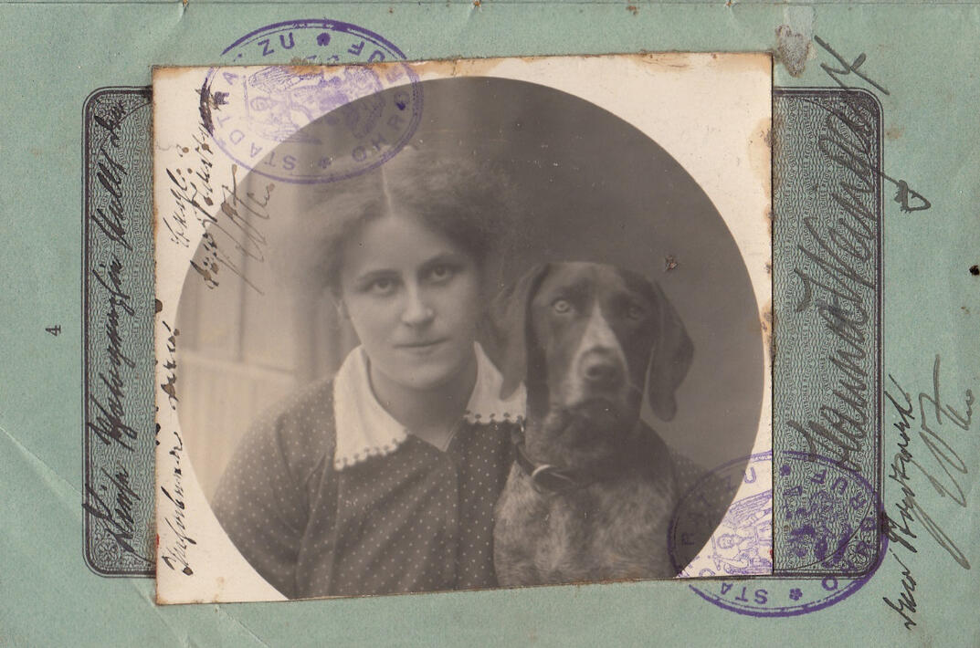 German passport 1916. Girl with dog